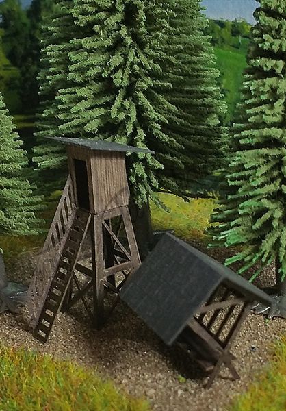 Bausatz für einen Hochstand und eine Futterkrippe.