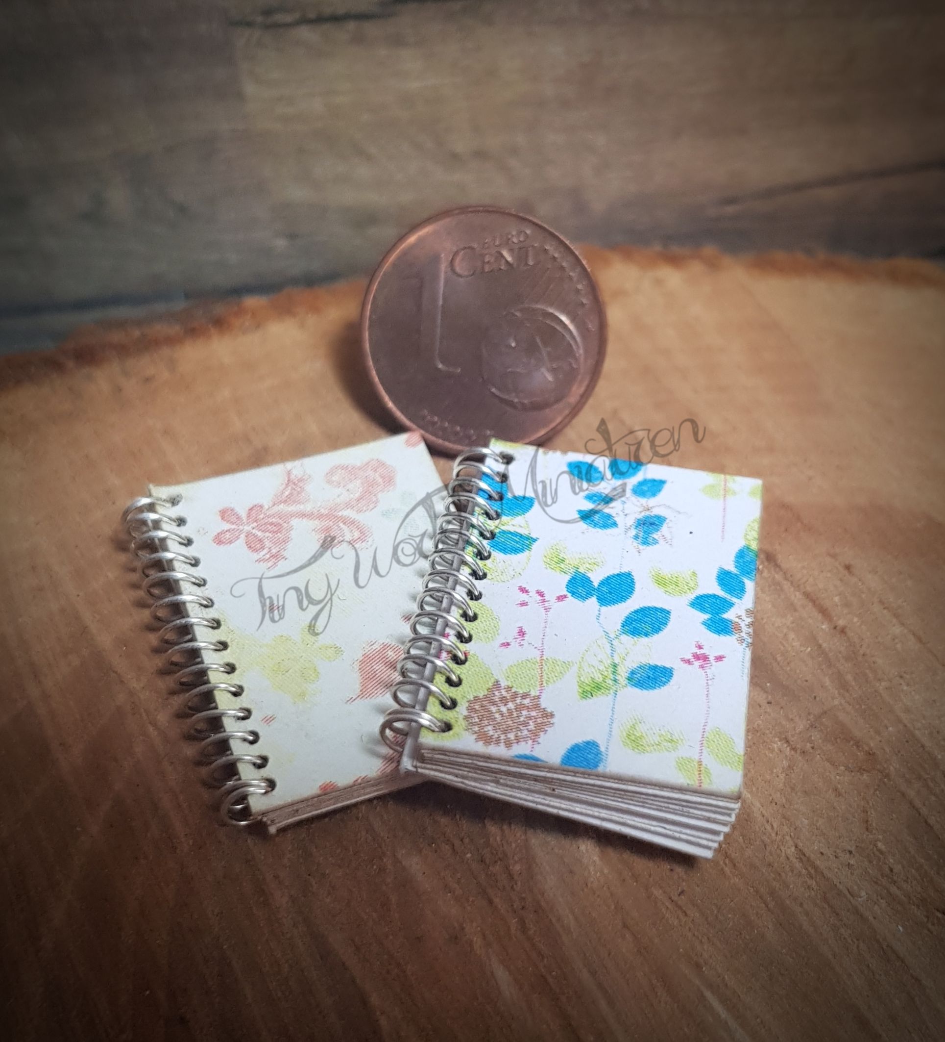 2 Ringbücher (ca. 2,5 x 1,8 cm) aufklappbar mit verschiedenfarbigen Einbänden.